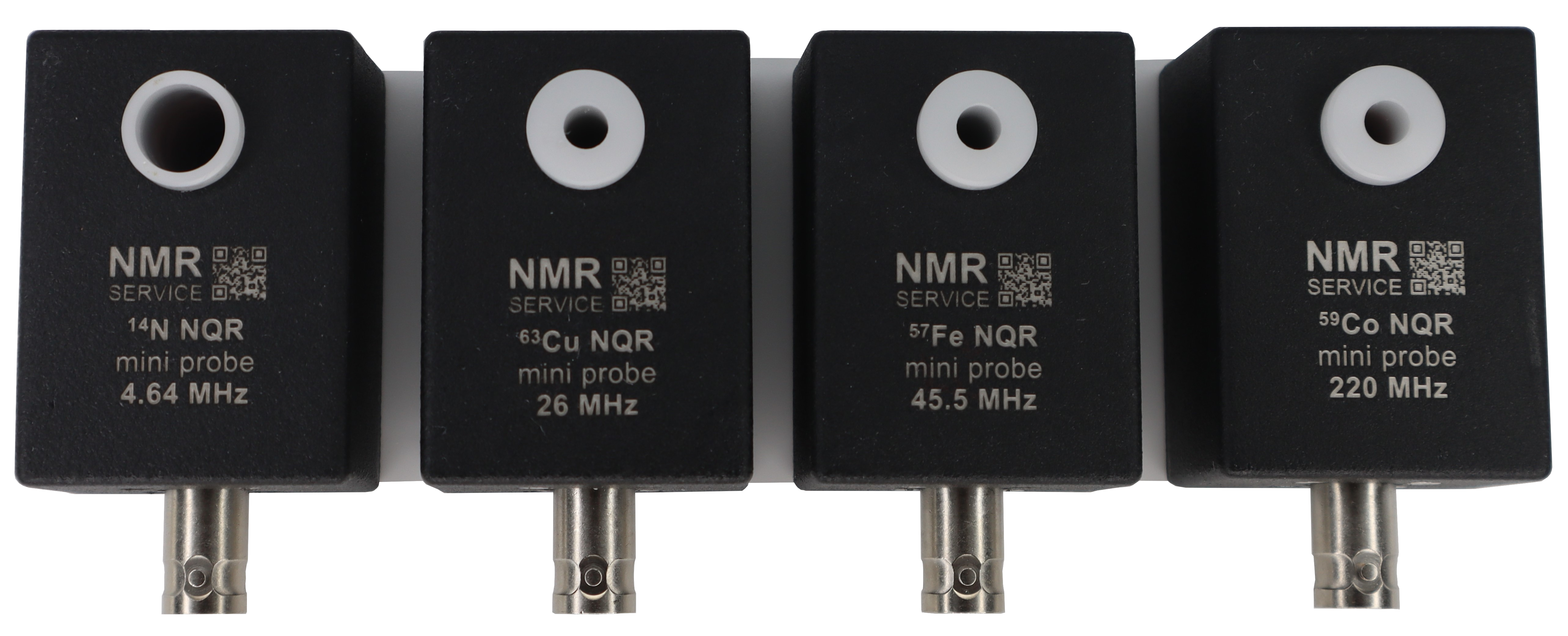 We offer NQR mini probes with fixed frequencies, e.g. reference experiments.